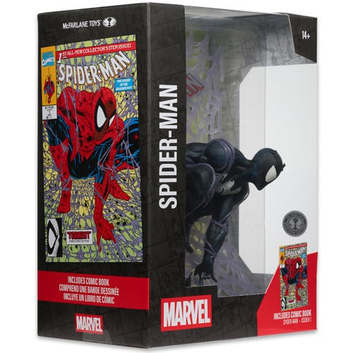 高い造形力とクオリティーに定評のあるマクファーレン・トイズが、『マーベル・コミック』を待望の立体化!名作カバーアートを立体化する1/6スケール「シーン・フィギュア」より、スパイダーマン(ブラックスーツ/プラチナム・エディション)[トッド・マクファーレン/Spider-Man Vol.1 #1]が登場だ!